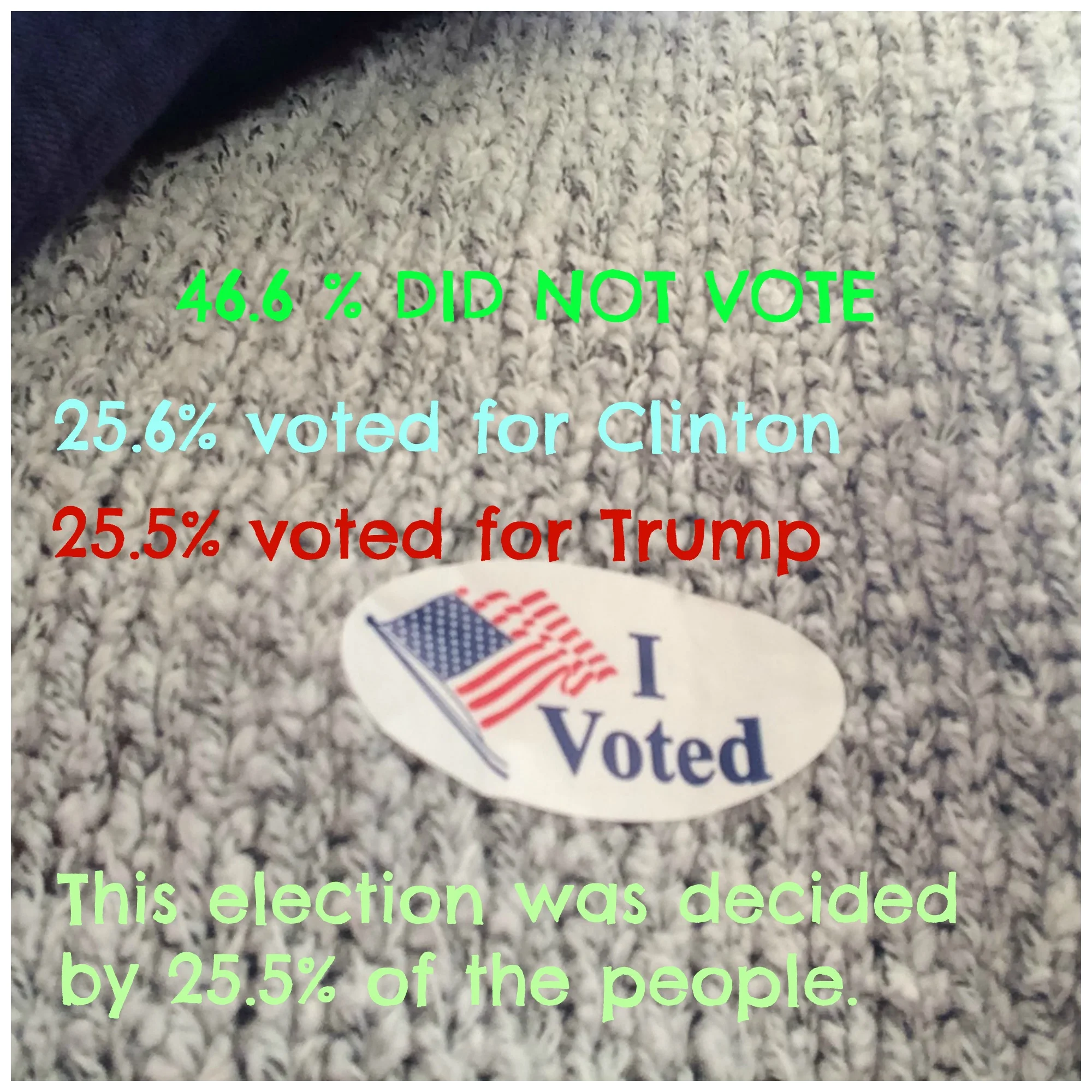 I’ve been mulling this over in my head, wringing it from one angle to the other. I’m in mourning right now. Am I mourning the fact that Donald Trump played the electoral college and won the presidency? In part, sure. I’d be lying if I said I wasn’t. I’m taking small solace in the fact that Clinton won the popular vote, but it’s pretty miniscule solace.