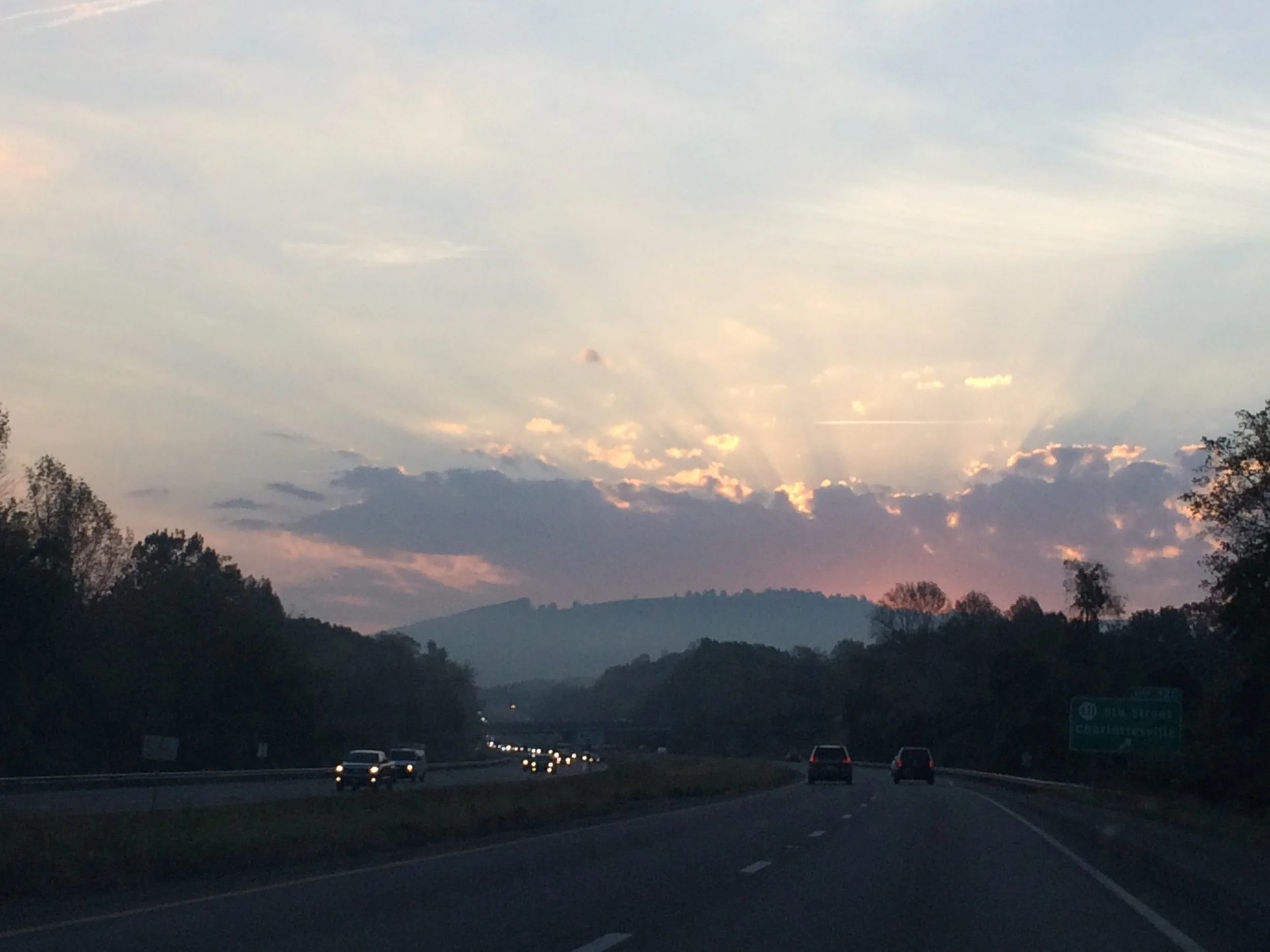 The sky one morning, worth embarrassing my daughter into taking this picture.