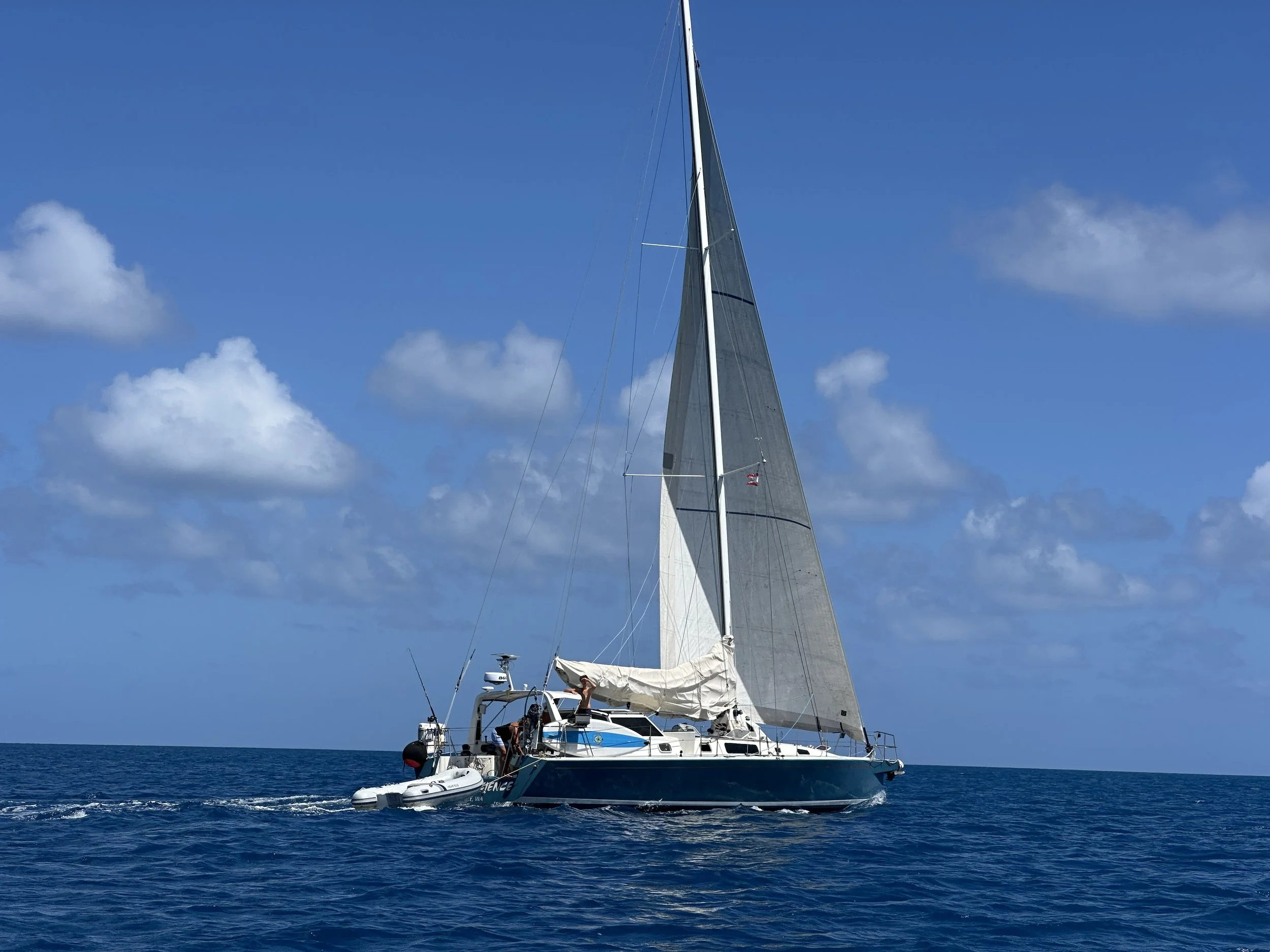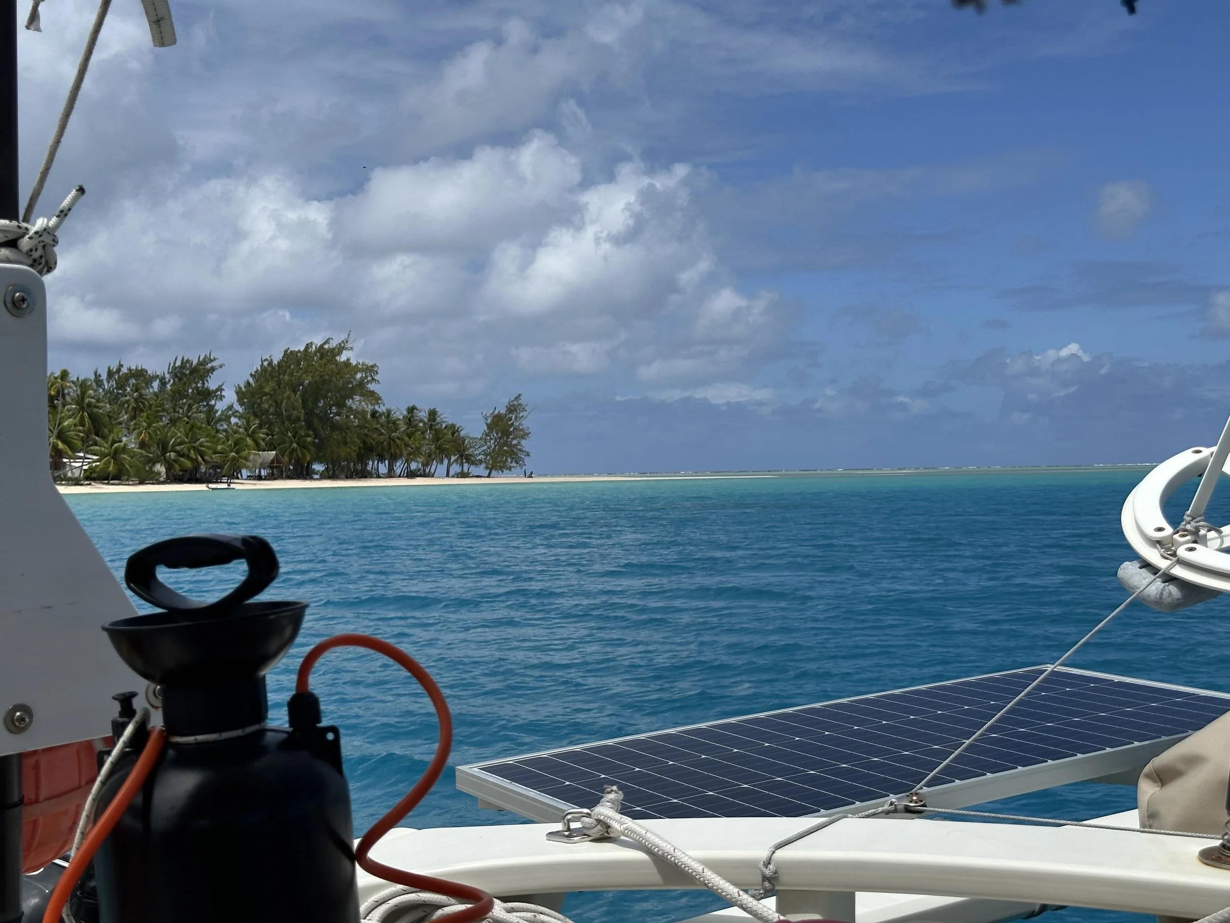 Foiling. We did escape the horrific town anchorage at Rotoava and at least come to a spot that’s got visibility to see where you’re dropping the anchor AND sand to put the anchor into. It’s called Hirifa, one of only 4 places where you are allowed to anchor in this entire atoll. During the height of the cruiser season, there’s a kite and wingfoil “school” that operates out of a catamaran that anchors itself in this bay. Much of the anchorage is protected by reef, which means when the wind blows it’s largely unobstructed flat water for foiling. Jeremy has been practicing gybing.