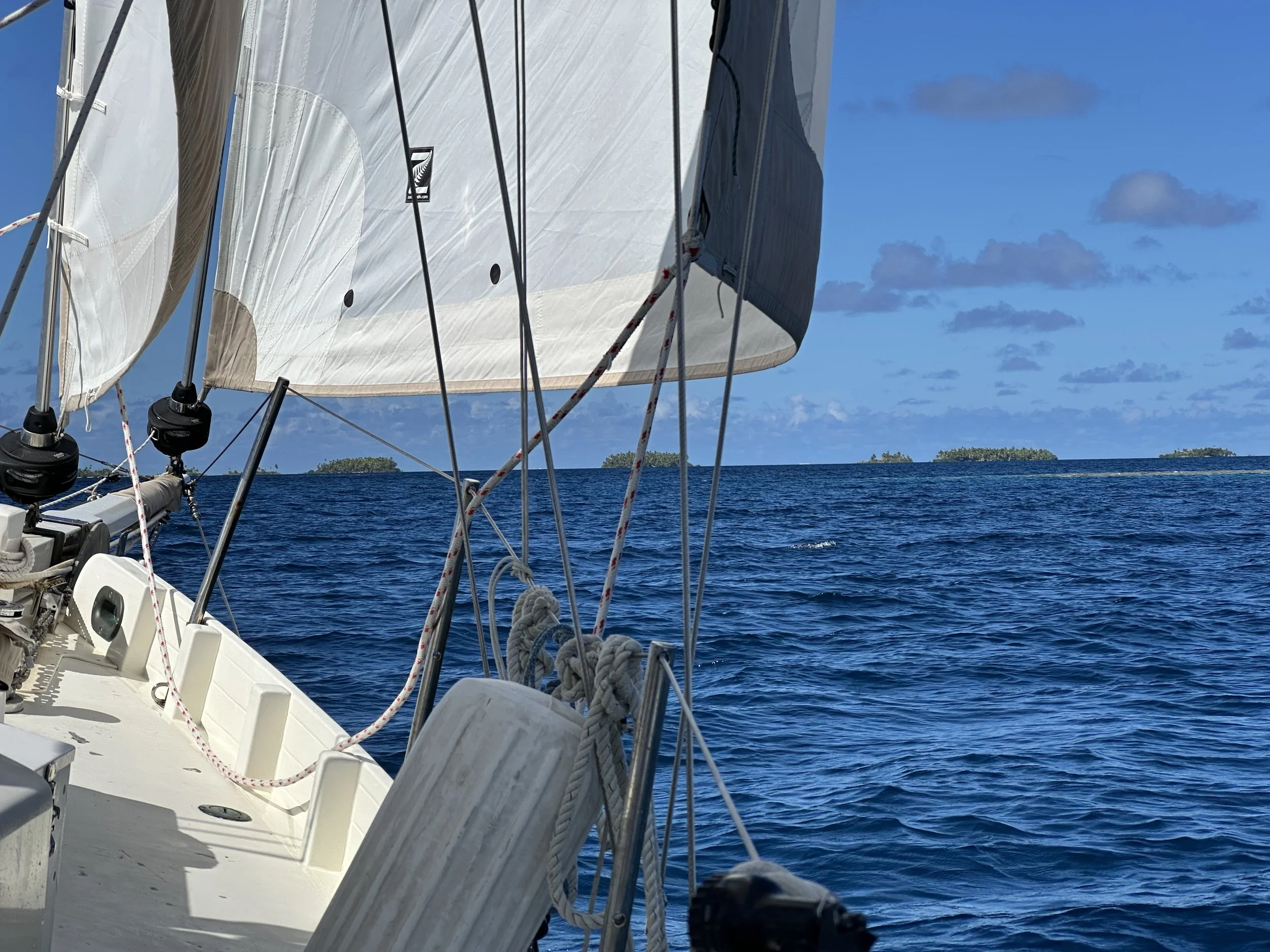 546 miles in a little over 4 days doesn’t come close to describing the shift. From jagged otherworldly green peaks that disappear into the clouds, to flat palm-tree-the-highest-point white sand beach fringed atolls. Anchorages that open up with no warning to passes that flash danger signs with standing waves.