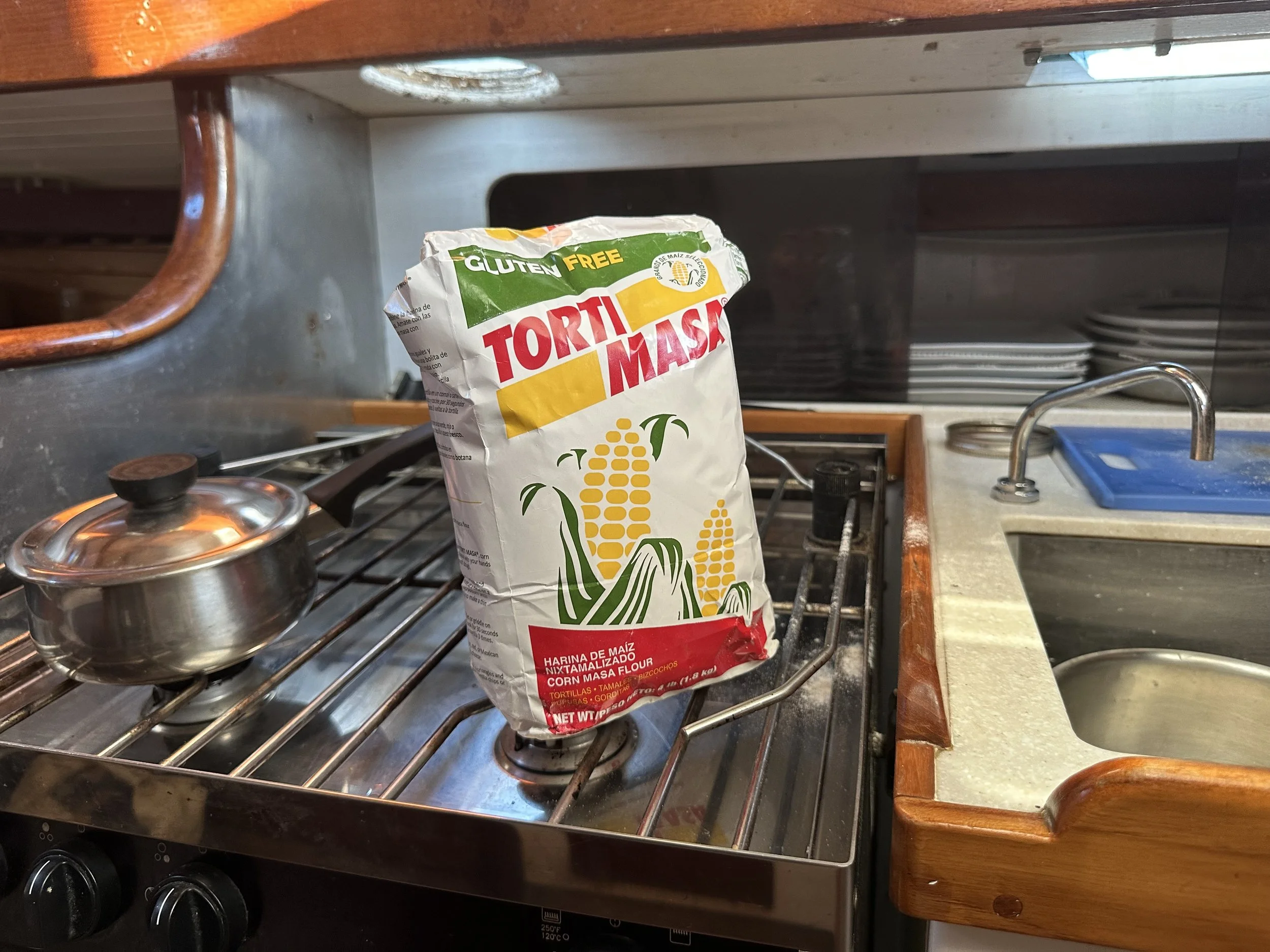Of course, through all of this, we’ve been eating. With no freezer aboard, we’re largely enjoying a bean-based diet, spiced up with the occasional jar of home-canned meat. Dried beans are perfect for many reasons, not the least of which they’re incredibly space efficient. We’d heard that black beans are impossible to source in French Polynesia and so stocked up in Panama. We’ll see how long the current stock of 10 pounds lasts us . . .