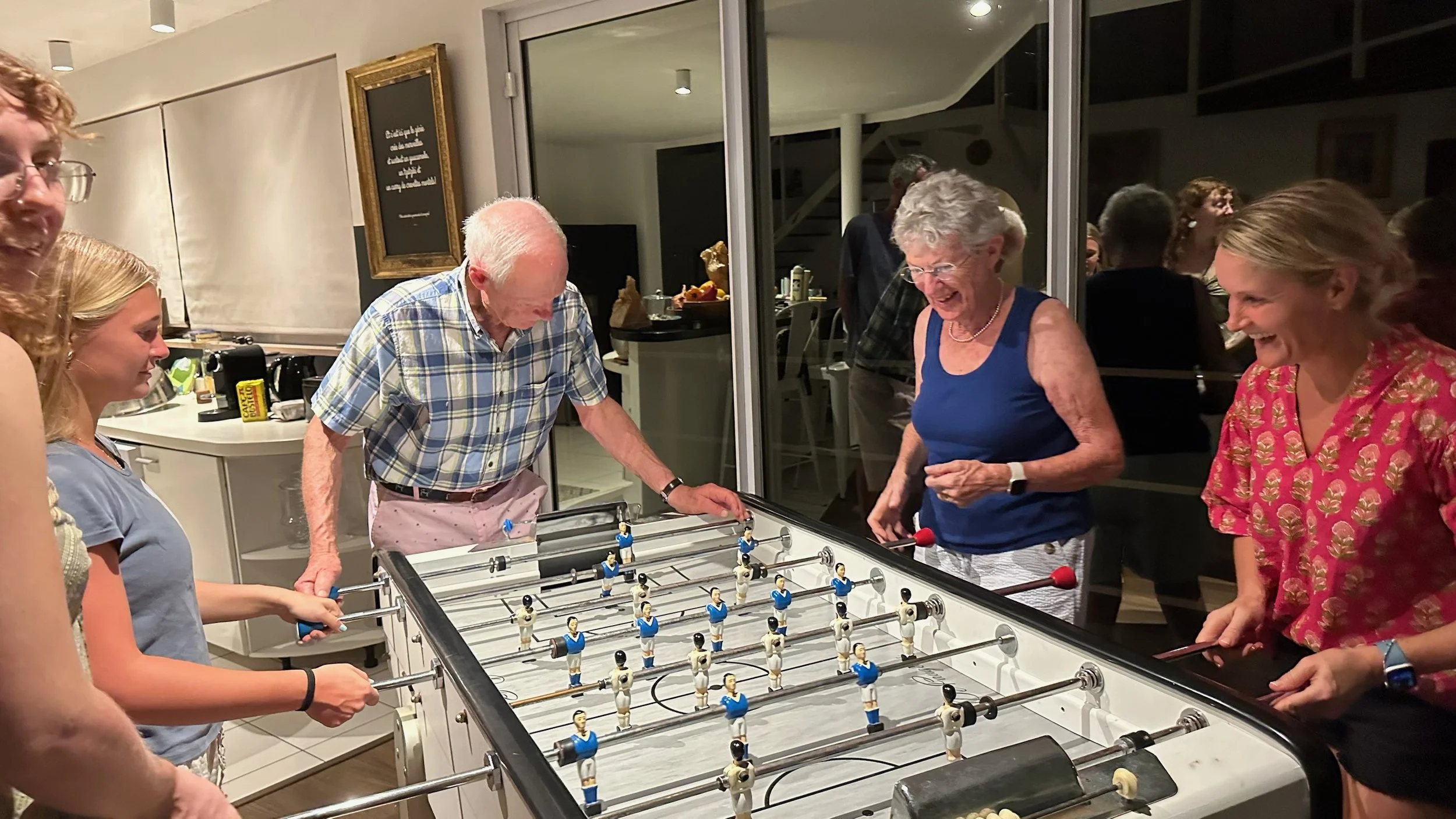 What a spot. The 2 houses were about 4 doors apart, an easy walk down the beach as long as you didn’t mind getting your feet wet when the tide was in. Kayaks and paddle boards came with the houses and were immediately pressed into service; the coconut tree right off of the deck of the bigger house was a source of immediate and endless entertainment. The bigger house had a foosball table even.