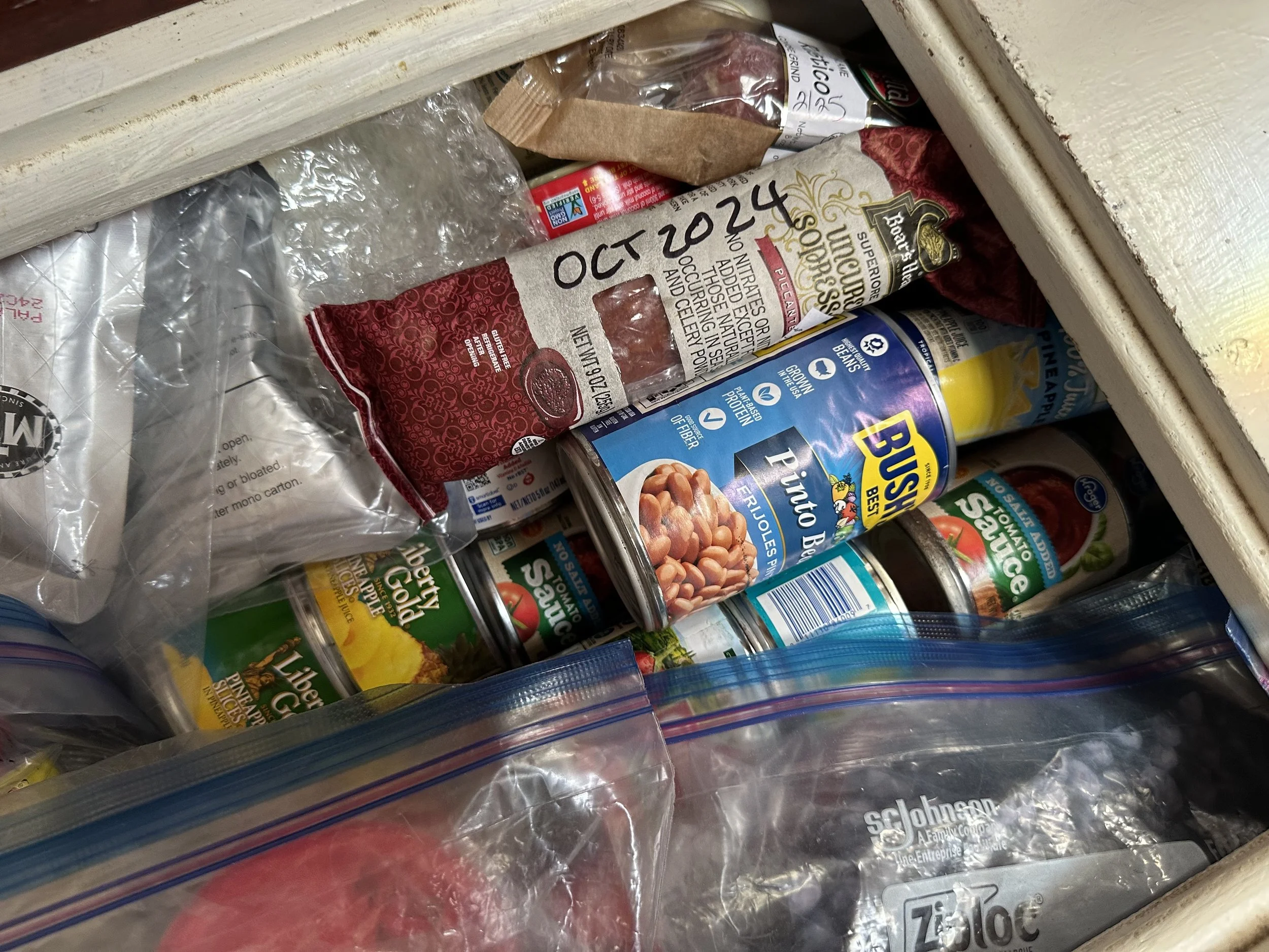 Question 3: Special stuff? Maple syrup is always on board. Hot sauce. Tonic syrup so we can make rum and tonics, even if sometimes the tonic water winds up being flat because the soda stream is out and we can’t get it refilled without a whole lot of rigamarole . . .