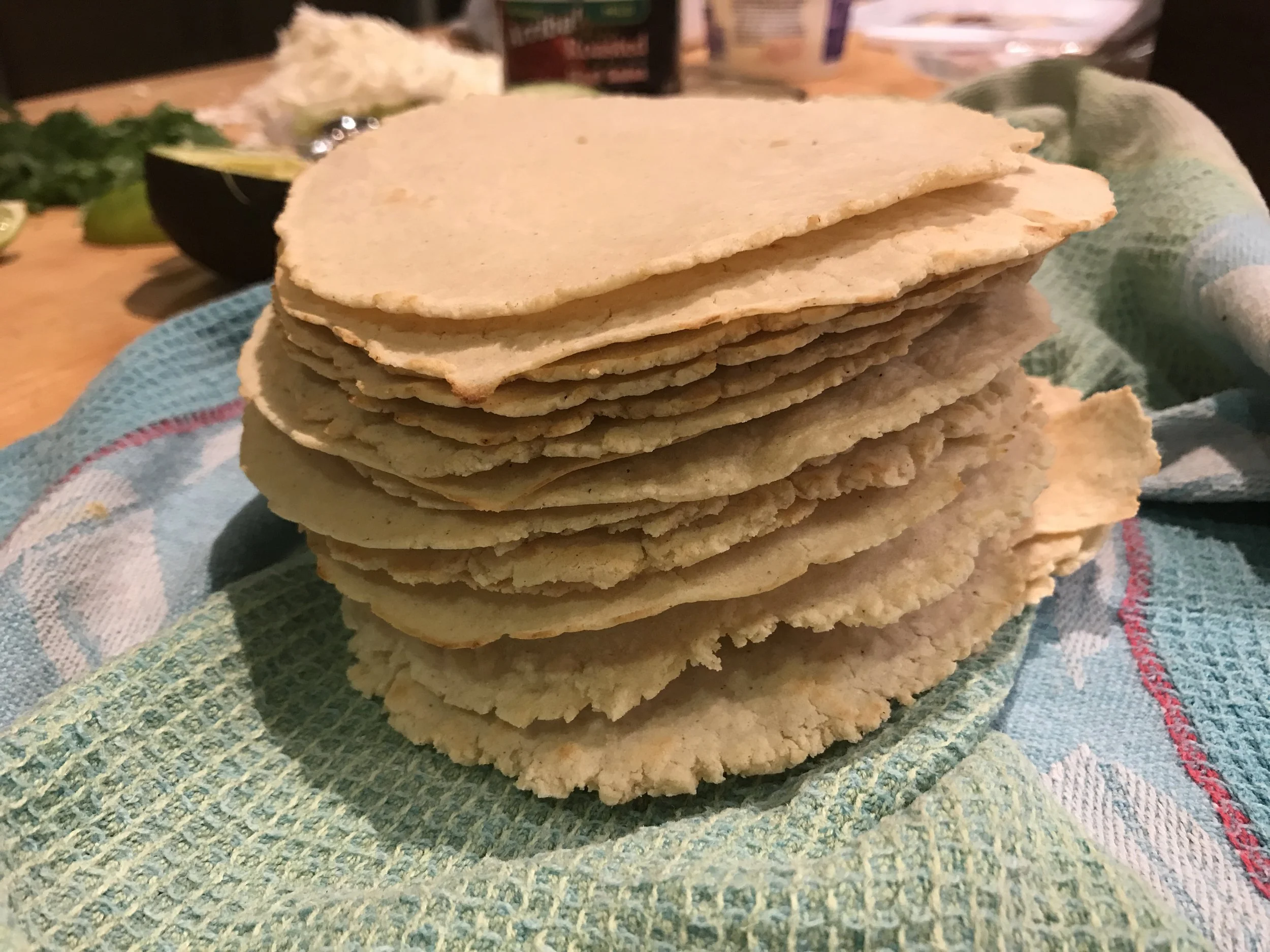 9. Stack the tortillas in a damp towel and let continue to steam and get pliable.